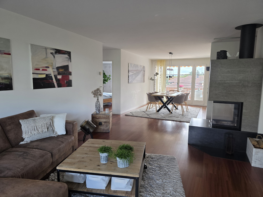 4.5 Zimmer-Wohnung mit 115 m² Wohnfläche. Die ruhige Umgebung, kombiniert mit einer schönen Aussicht und optimaler ÖV-Anbindung, macht dieses Zuhause zu einem idealen Rückzugsort.