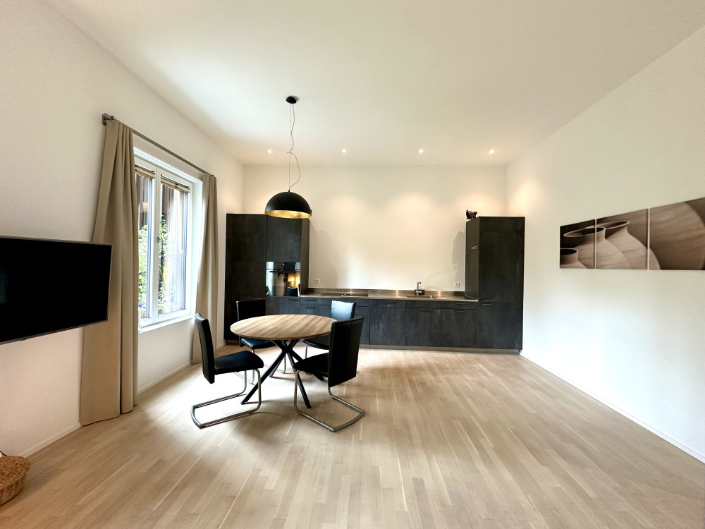 Die Wohnung befindet sich im allzeit beliebten Neubad-Quartier, unweit vom öffentlichen Verkehr, Einkaufsmöglichkeiten und Schulen. Im Inneren treffen Sie auf modernen Wohnraum in Kombination von einem interessanten Raumkonzept. Der Wohn- und Essbereich sind zum Hinterhof angeordnet, wodurch Sie einen harmonischen Blick ins Grüne geniessen. Die eindrückliche Raumhöhe von bis zu 3.5 Meter rundet das Gesamtbild ab. Grosszügige Fensterfronten verleihen der Wohnung viel Tageslicht. Der eigene Waschturm in der Wohnung sorgt für den gewünschten Komfort. Der gedeckte Sitzplatz mit Gartenanteil setzt dieser Immobilie die Krone auf.