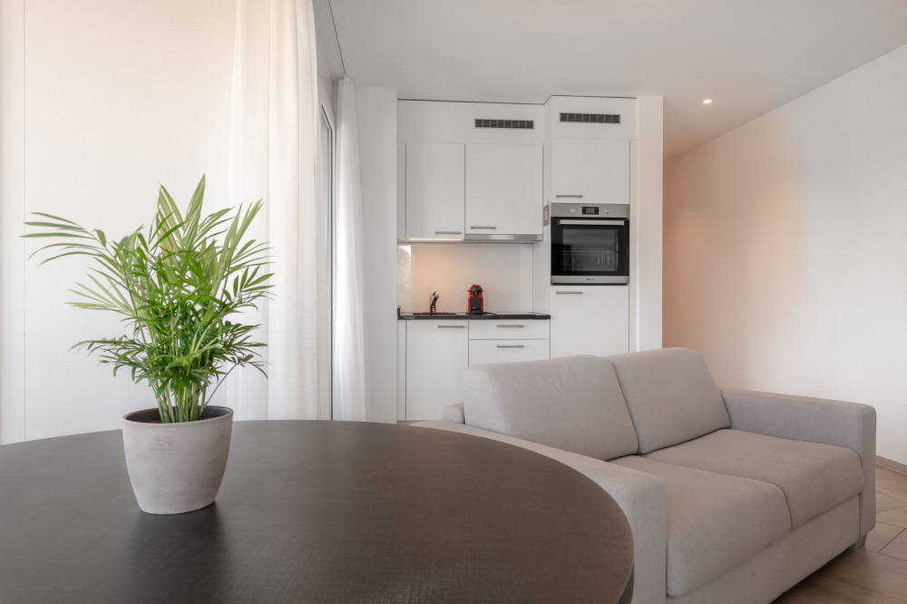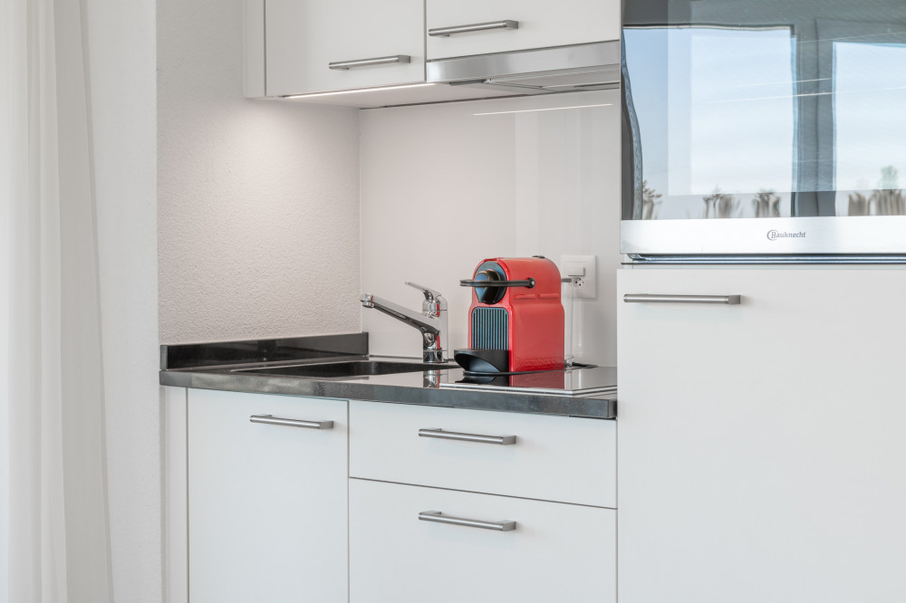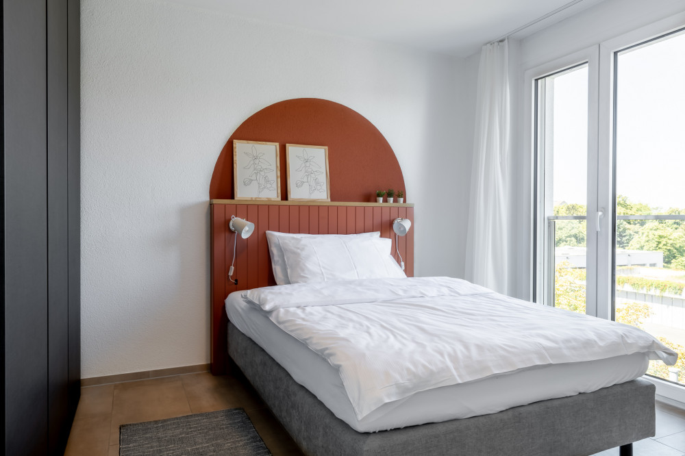 Our serviced apartments are fully furnished and equipped with high-speed internet, enabling you to work efficiently. "Fully furnished" means everything is provided – from kitchen essentials like dishes and cutlery to a kettle, iron, bed linens, and towels. The smart TV ensures entertainment on rainy days, and the TV subscription is already set up when you arrive. To kick-start your mornings, a high-quality sound system is also included. With our playlists, we guarantee groovy mornings.